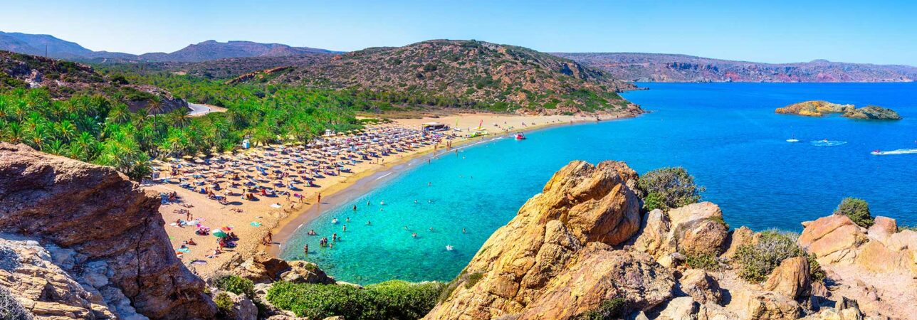 Nog een tip voor je vakantie op Noord-Oost Kreta is het palmenstrand van Vai. Deze bijzondere plek ligt op 40 minuten van Sitia. Het palmenbos is beschermd natuurgebied en moet je echt gezien hebben. Aan de rand van het strand vind je rotsen. Combineer dit met de indrukwekkende palmbomen, schitterend zand en een azuurblauwe zee en je waant je in een paradijs. Ook watersporters halen hun hart hier op: in Vai kun je onder meer snorkelen, duiken en waterskiën. Het verbaast je vast niet dat Vai tot één van de mooie stranden van heel Kreta behoort. Wil je Oost-Kreta nog wat verder verkennen? Bezoek dan Heilige Klooster van Toplou en de oude stad Itanos, allebei niet ver van Vai.