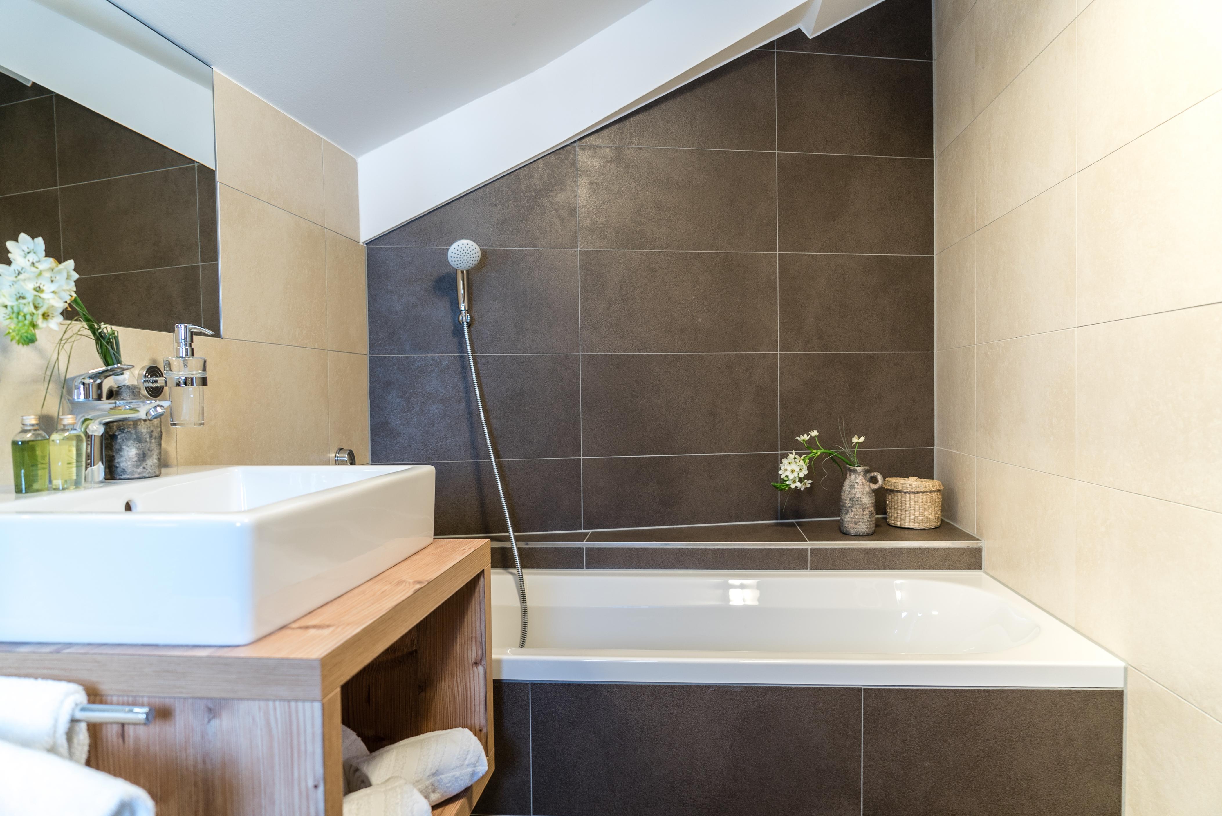 - 1e badkamer met bad, föhn, make-upspiegel